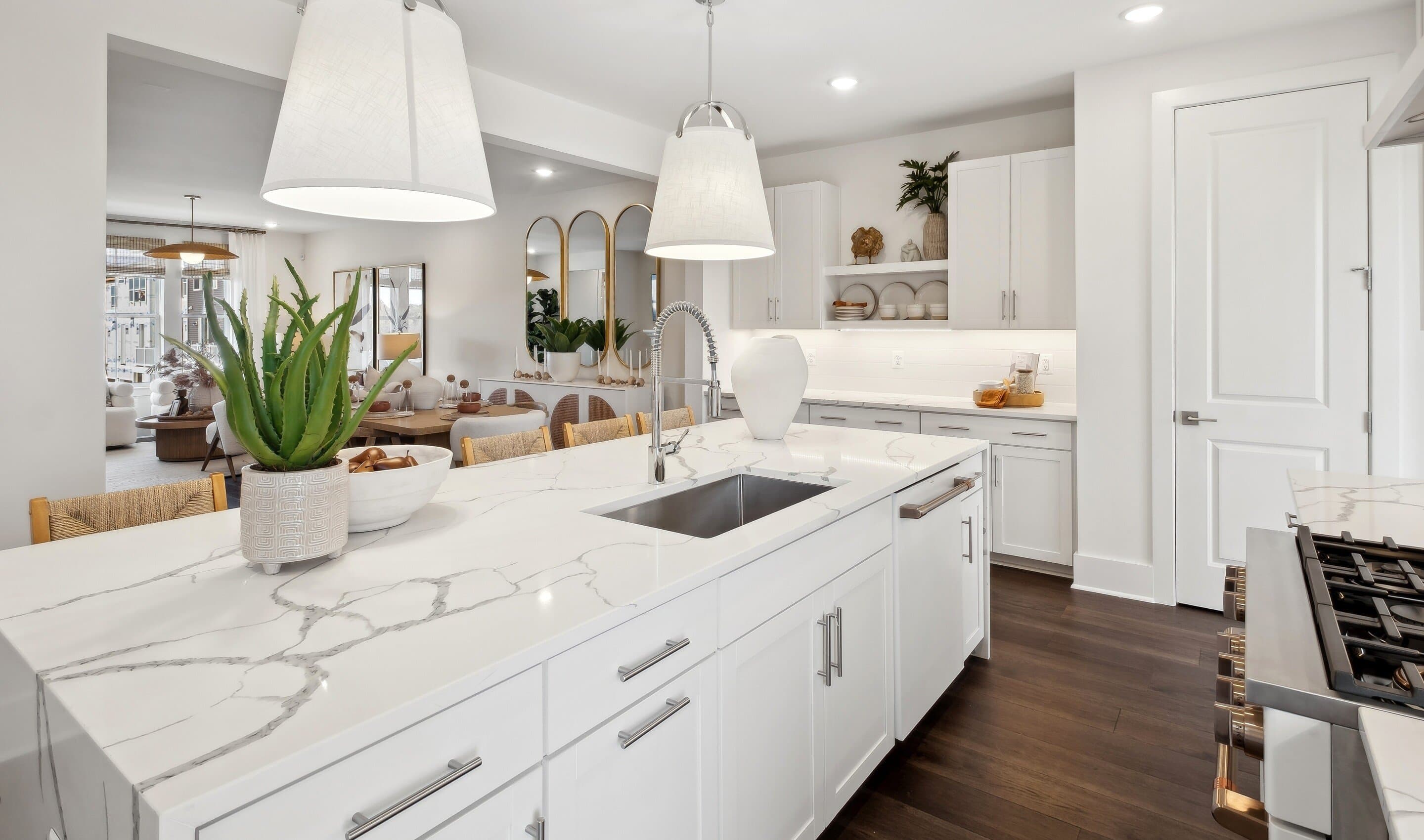 Kitchen with pendant lights over island